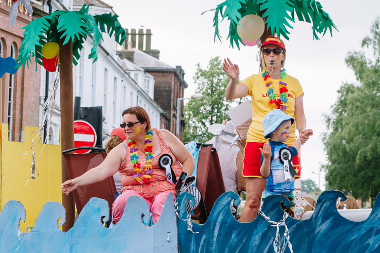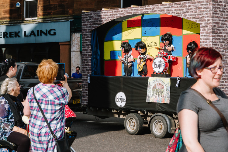 I was particularly impressed with the colourful mini Beatles float and the tenacity of Disney characters of Summerhill Community Centre (it was a hot sunny day to wear those costumes!). Five bands played Scottish tunes. Most loved locally Blood Bikes took a ride in the procession, as well as rare cars and vintage agricultural machinery.