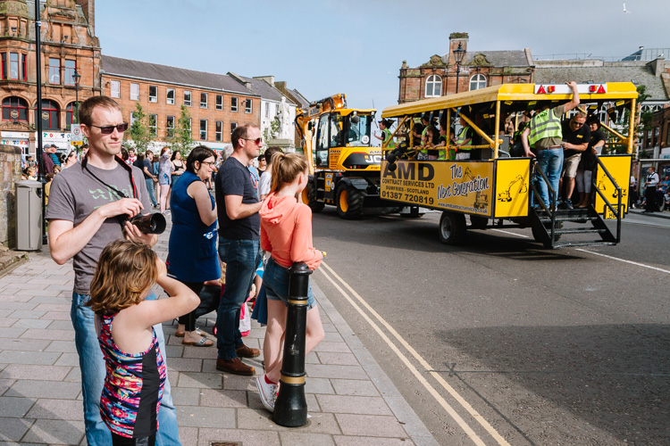 Tesco delivery truck people generously shared fruit and drink with the public and participants throughout the whole afternoon. The old Western bus brought back nostalgic memories in some onlookers. Thousands of Doonhamers took to the street to clap and cheer their favourites. So much community spirit and eccentric creativity were on show!