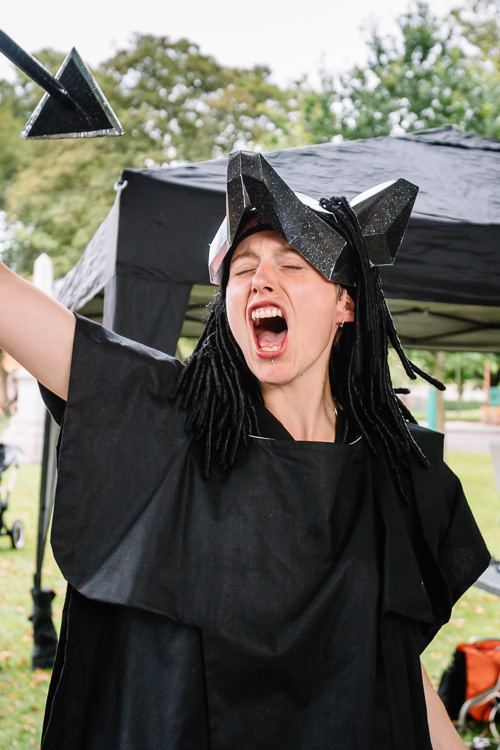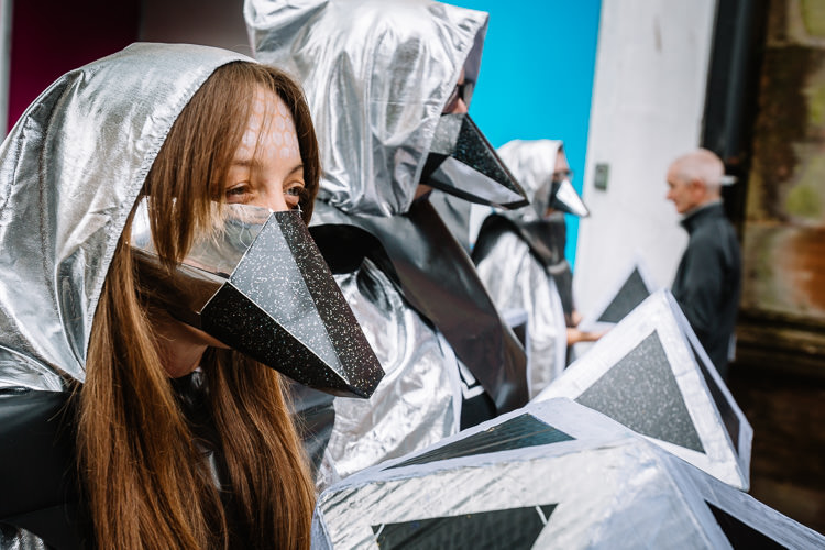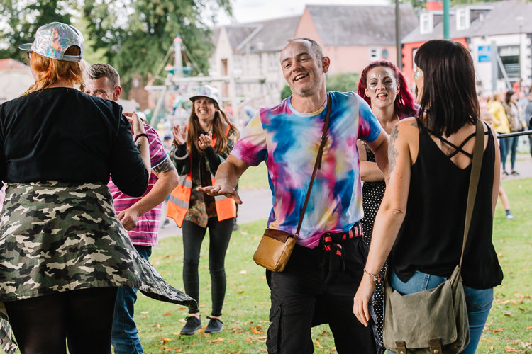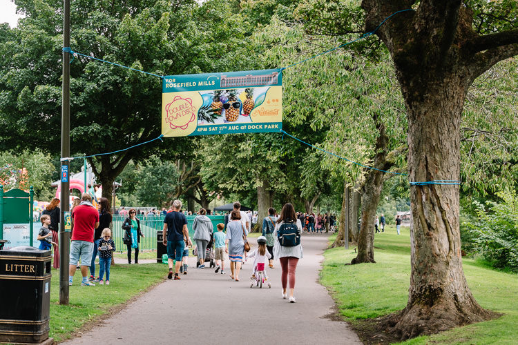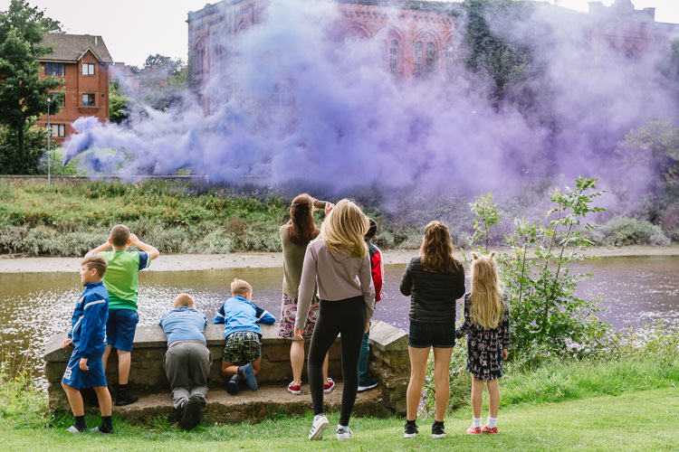 In the afternoon Nithraid visitors walk across to Dock Park to listen to the specially commissioned sonic artwork for to mark the long-awaited Rosefield Mill revival. The music (and the disco floor) was provided by the popular Double Down Disco crew – and there was lots of dancing for kids and grownups alike led by Maddjakallss! Lavender smoke floated from the derelict Mill building and over the Nith waters to draw attention to Dumfries Victorian-era landmark.