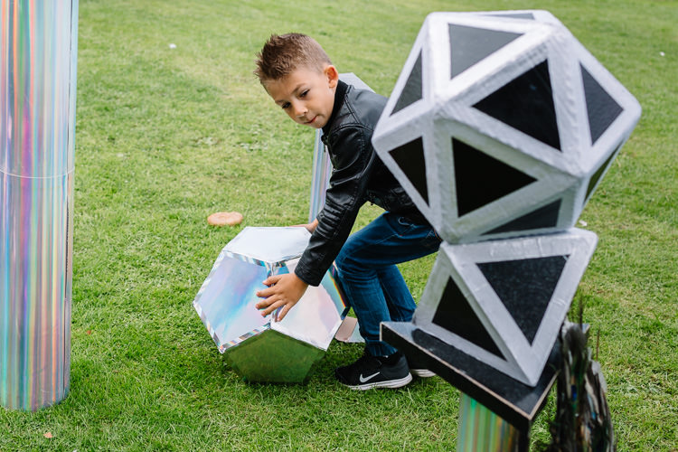 Kids engage with Maddjakallss magic shapes in the “sacred zone”