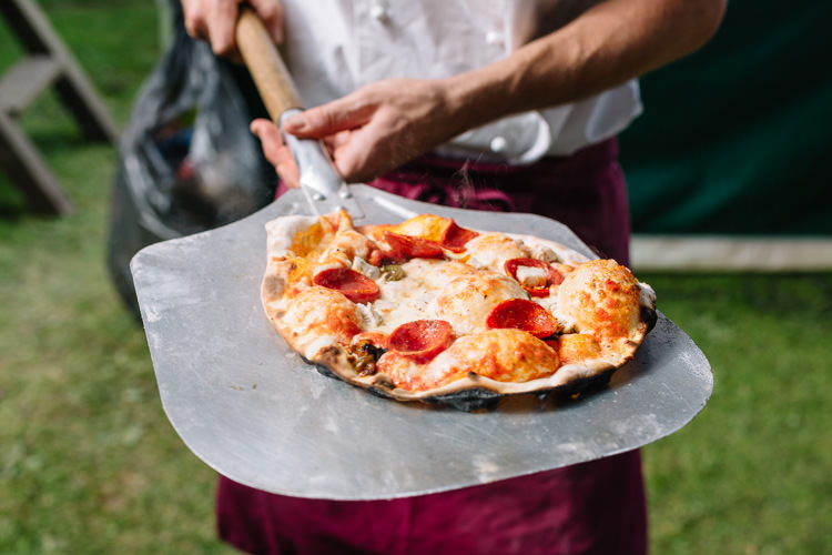 Making a pizza by Northern Wilds Wood-Fired Pizzas