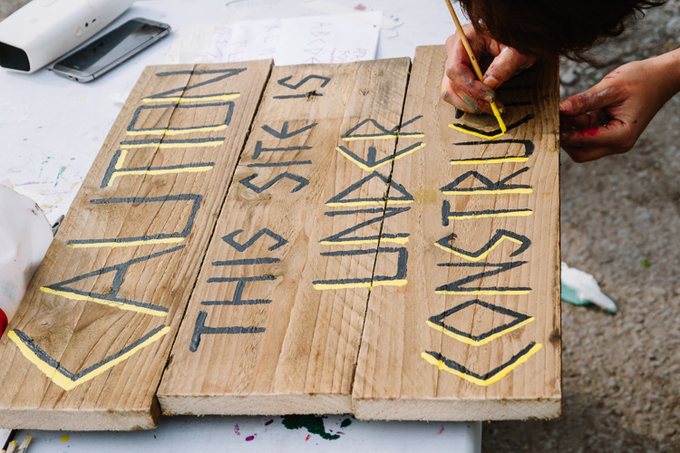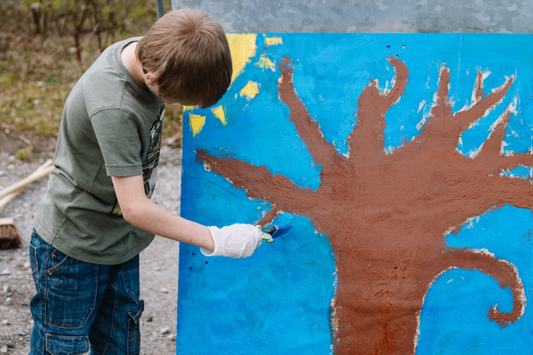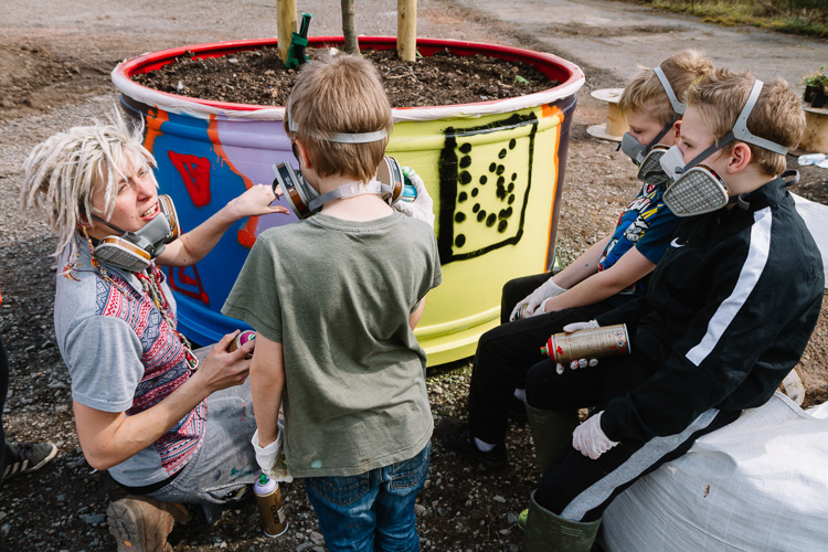 Local young artists from Blueprint100 came up with a plan to combine creativity, learning and hard work – by offering sign painting and spray painting workshop to the Sandside residents. Some kids had a go at hand painting, while others put on safety masks to learn new spray painting skills. It was a lot of fun!