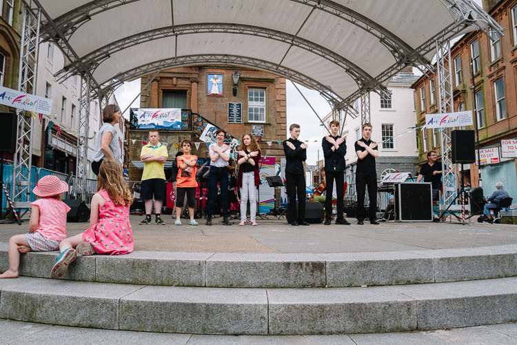 What the young promoter’s programme succeeded in doing was liberating the D&G Arts Fest from the confines of the stationary Plainstanes stage and making it spill out to other High Street pedestrian areas and squares.