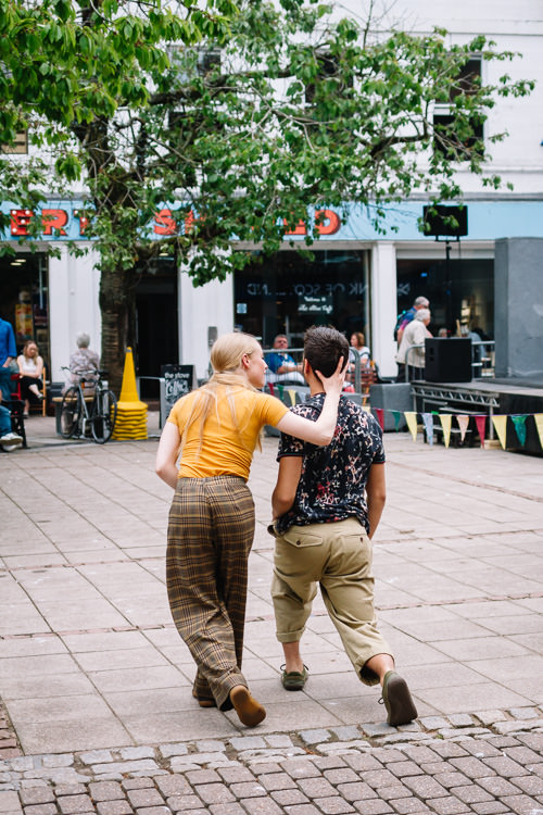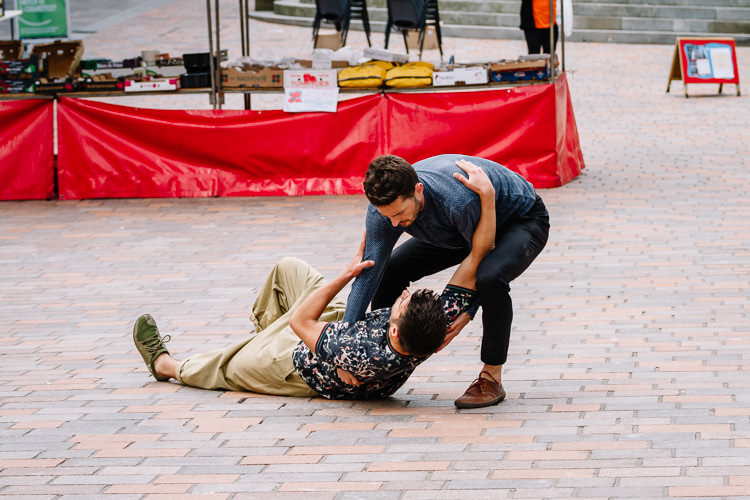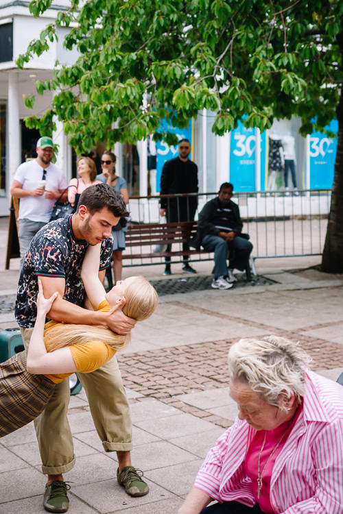 Doonhamers were treated to the latest Janis Claxton Dance production, Pop-Up Duets (Fragments of Love) show, a series of 5-minute dance miniatures on the nature of love, same sex relationships, gender reversals and dynamics. These spectacular contemporary dance duets were designed to be delight and provoke accidental audiences in public spaces, i.e. museums, galleries cafes, shopping centres etc.) and very interesting from the urban photography perspective.