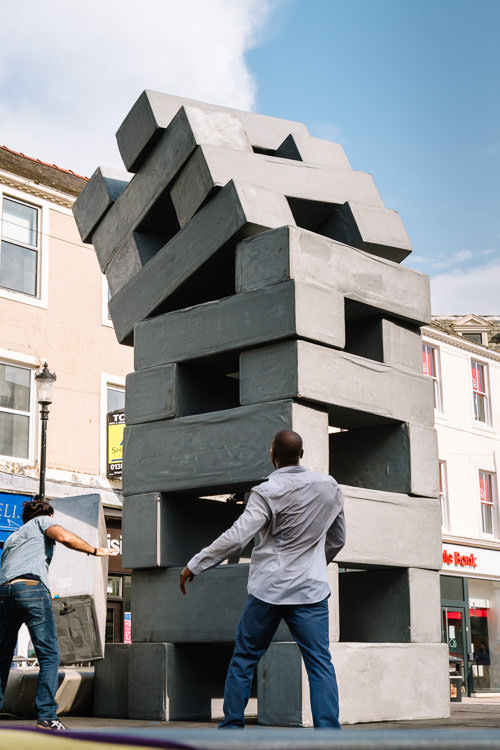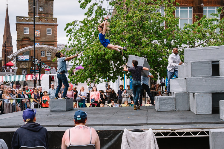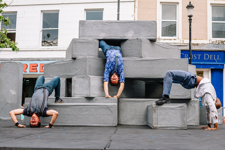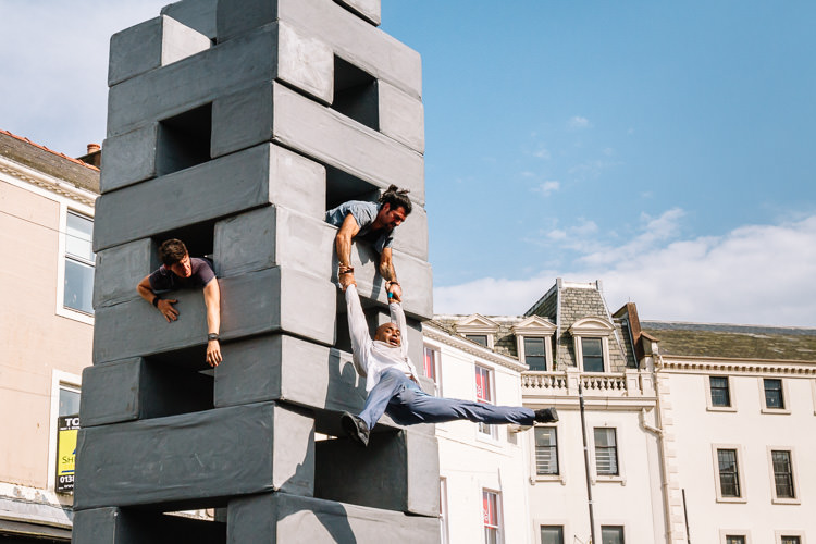The square outside the Stove became home to BLOCK, a thrilling dance and aero-acrobatic circus fusion. A collaboration of Motionhouse and NoFit State, the show is an allegory of modern urban life based around twelve giant blocks being moving, re-rearranging, building with and collapsing, while the performers engage in physical dance, theatrical antics and aerial acrobatics enactment of daily life and survival in the modern city.