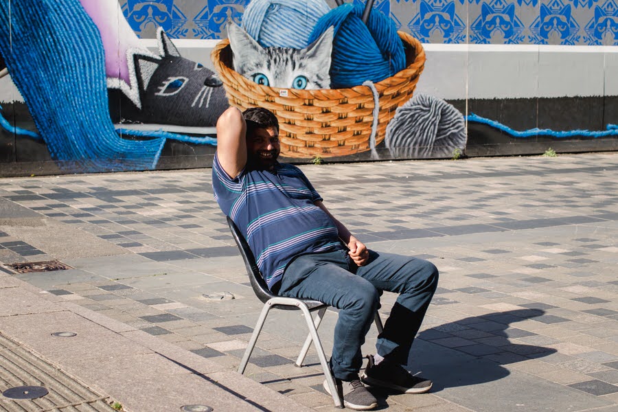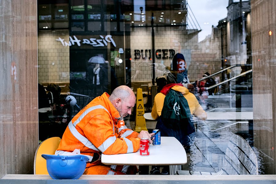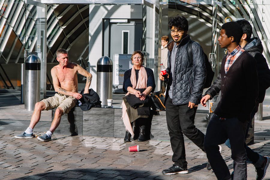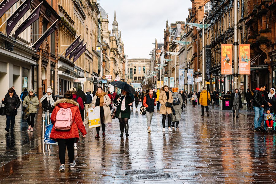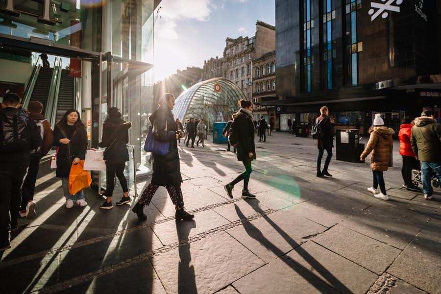 Taking the sun on Sauchiehall Street during early stages of COVID-19 lockdown easing